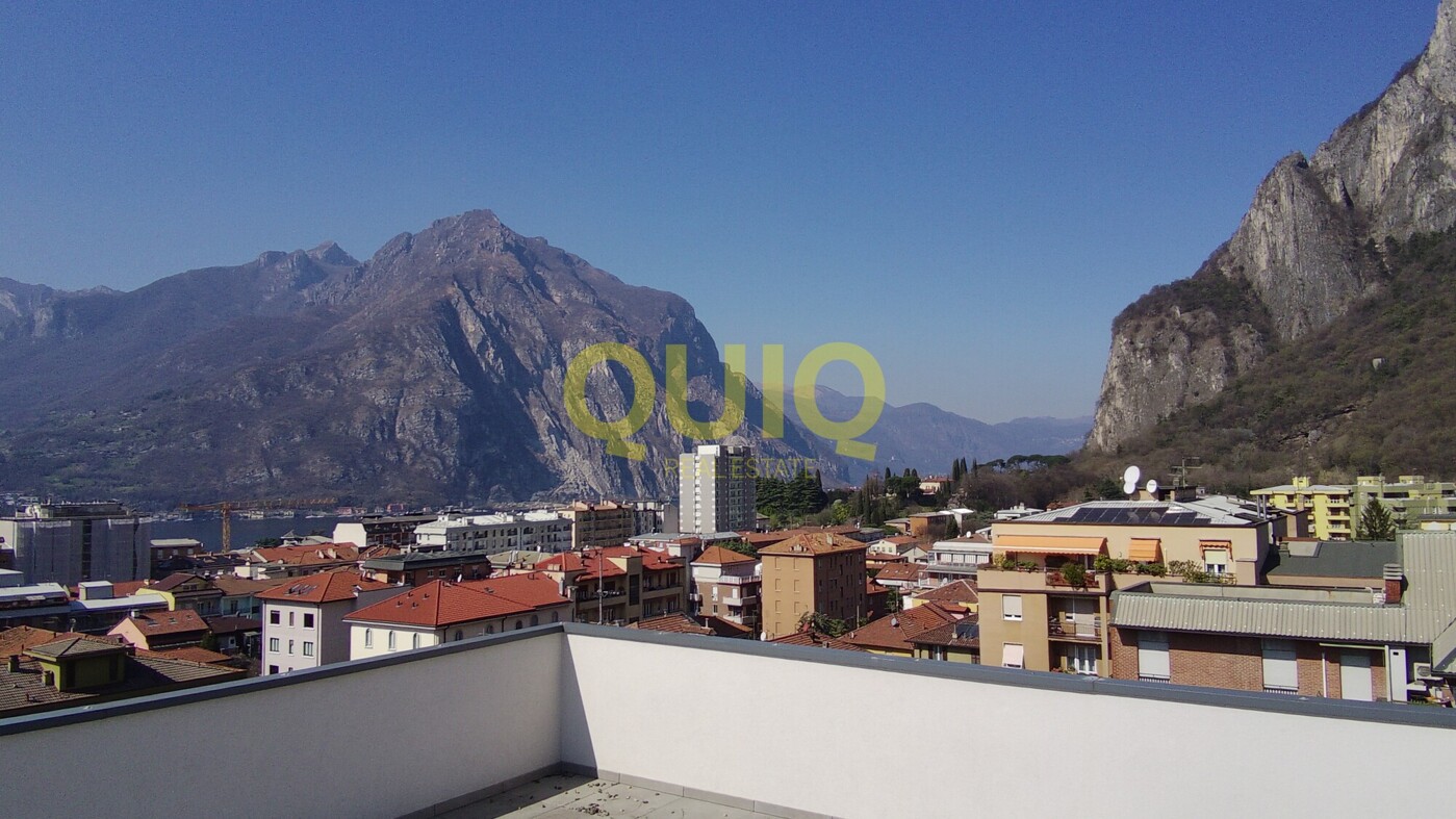 QUIQ Real Estate propone in vendita in esclusiva a Lecco, attico ad alta efficienza energetica in classe A4, servito da ascensore con accesso diretto all’immobile; mq 122 abitativi oltre mq 153 di terrazzi, box doppio in larghezza, posto auto interno coperto privato e cantina. Una soluzione autentica e di prestigio: un’abitazione moderna, efficiente e sostenibile, situata al quinto ed ultimo piano di un nuovo complesso residenziale realizzato con linee moderne e materiali all’avanguardia. L’immobile si distingue per la sua panoramicità e per la sua posizione strategica a pochi passi dal centro cittadino. Libero su quattro lati garantisce massima privacy e offre viste suggestive su lago e montagne circostanti da ogni angolo dell’appartamento. Con una struttura già ultimata ma ancora personalizzabile nelle finiture, rappresenta un'opportunità unica per chi desidera progettare gli spazi secondo stile e gusto personale. Ambienti luminosi, ben distribuiti e funzionali; il progetto prevede una spaziosa e luminosa zona living, cucina abitabile attualmente lasciata a vista, tre camere da letto, tre bagni, oltre lavanderia. Tutti i locali affacciano su terrazzi o ampi balconi. Collegata tramite scala esterna, esclusiva terrazza panoramica di mq 97, uno spazio suggestivo e riservato, ideale per momenti di relax e convivialità all’aperto, con la possibilità di realizzare, a proprio piacimento, una zona living esterna con piscina, giardino pensile o area lounge su misura.Per info. e visite contattare i ns. uffici al numero 0341.581447 oppure mezzo e-mail all'indirizzo info@quiq.re.