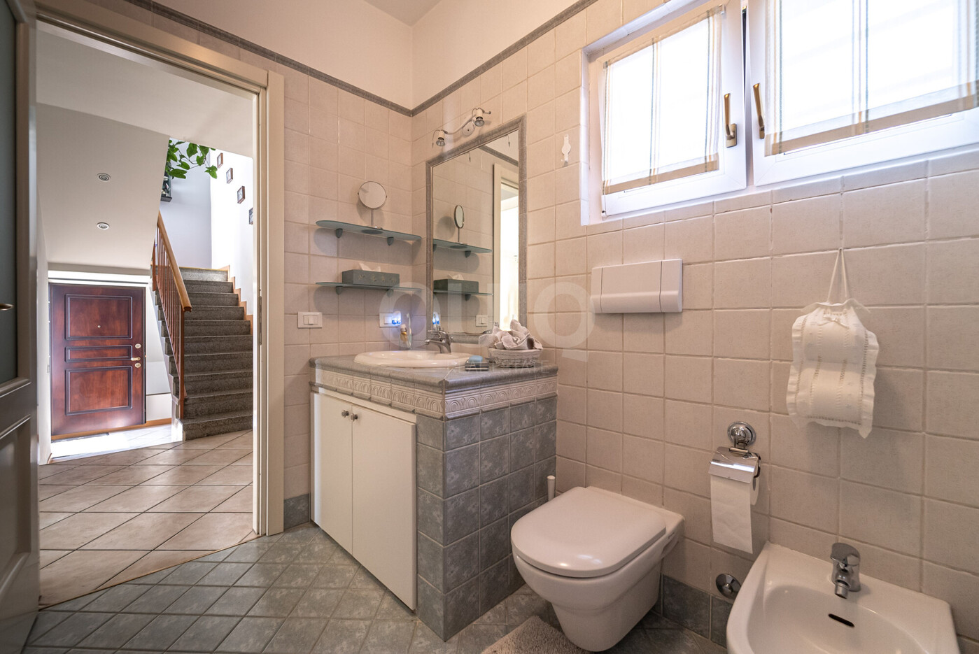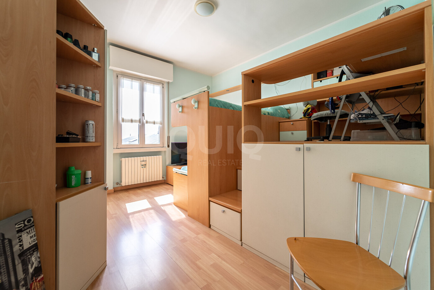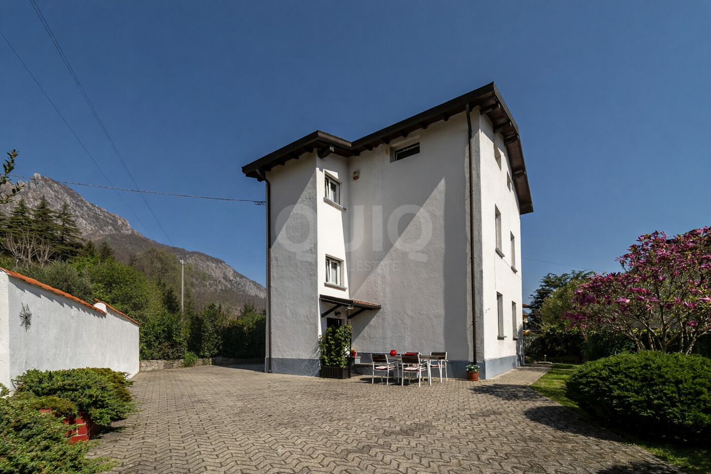 QUIQ Real Estate offers for sale exclusively in Valmadrera, single villa of about 240 sqm located on the end of Via Tasso, a closed-end road with access limited to residents only, which guarantees a particularly quiet and peaceful context.The property is independent on four sides, surrounded by flat, planted and fenced green area, partly intended for driveway access and parking.